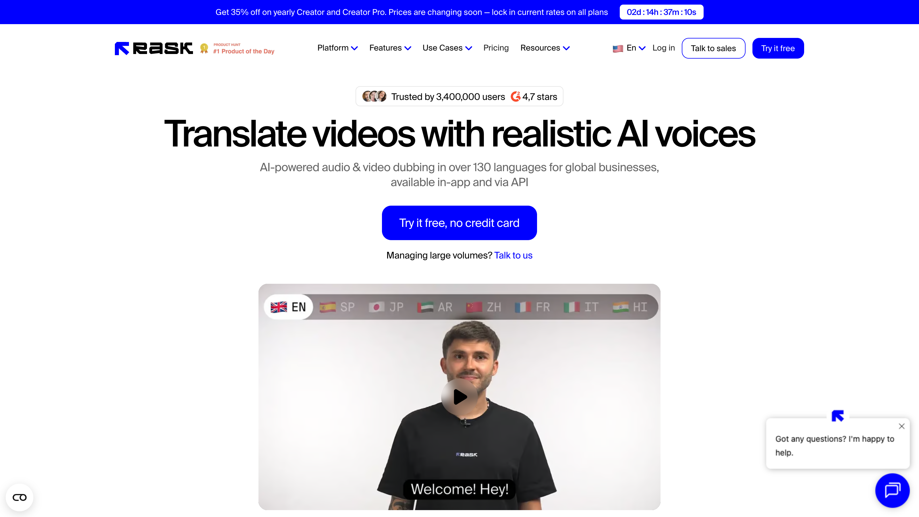 If you are doing high-volume audio dubbing where lip sync is not critical (podcasts, voiceovers, audio-first content), Rask AI offers a mature workflow at reasonable prices.